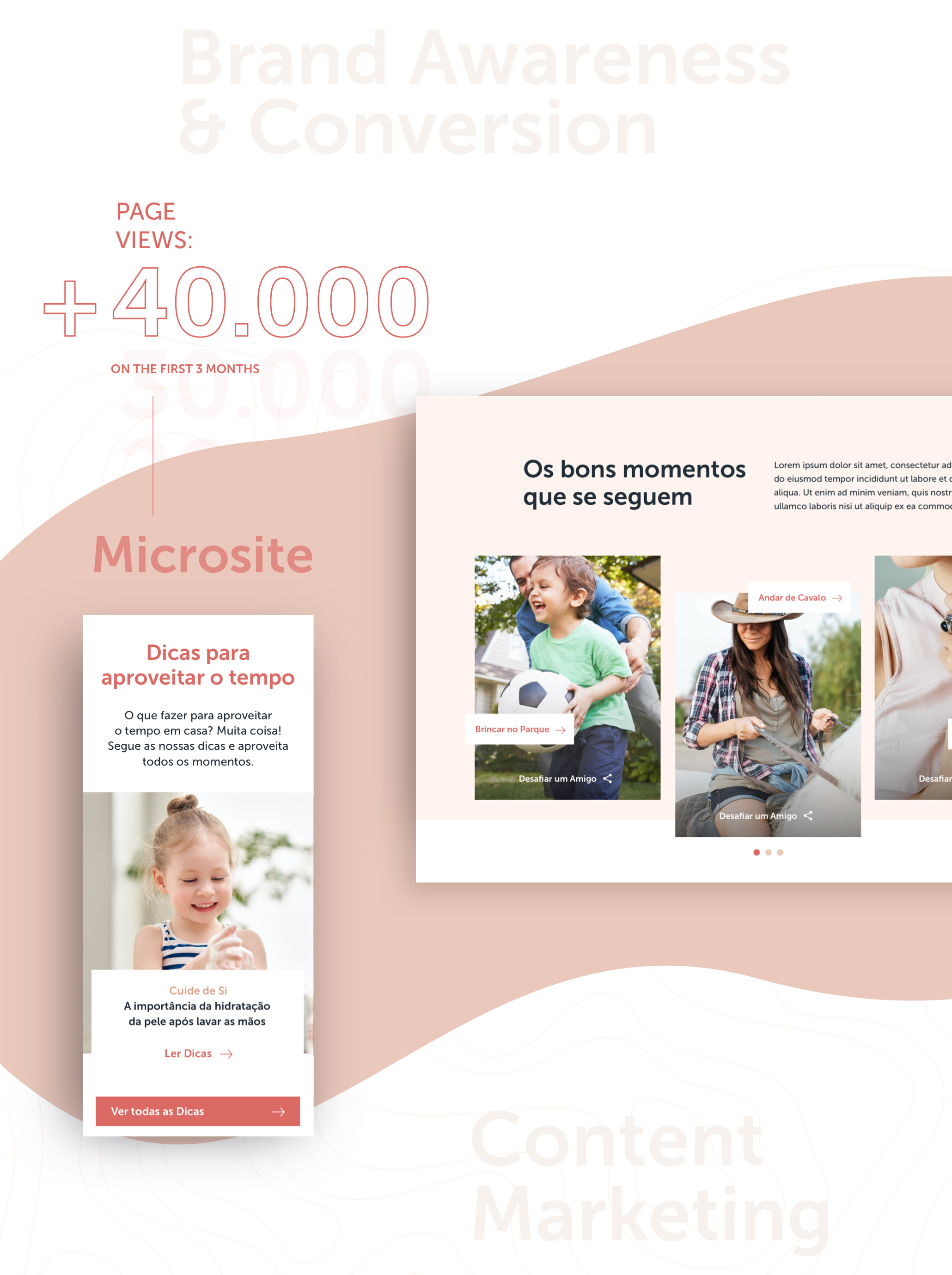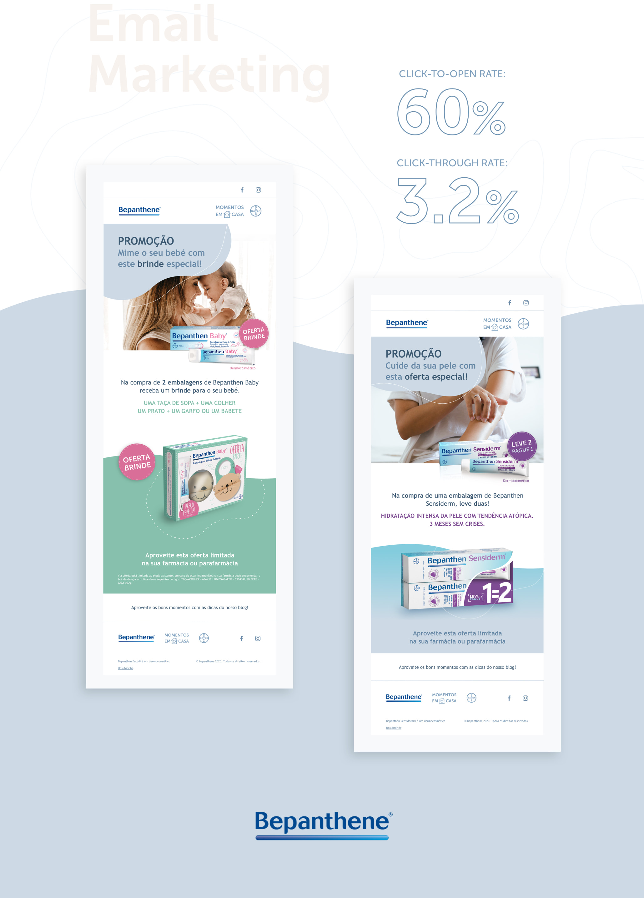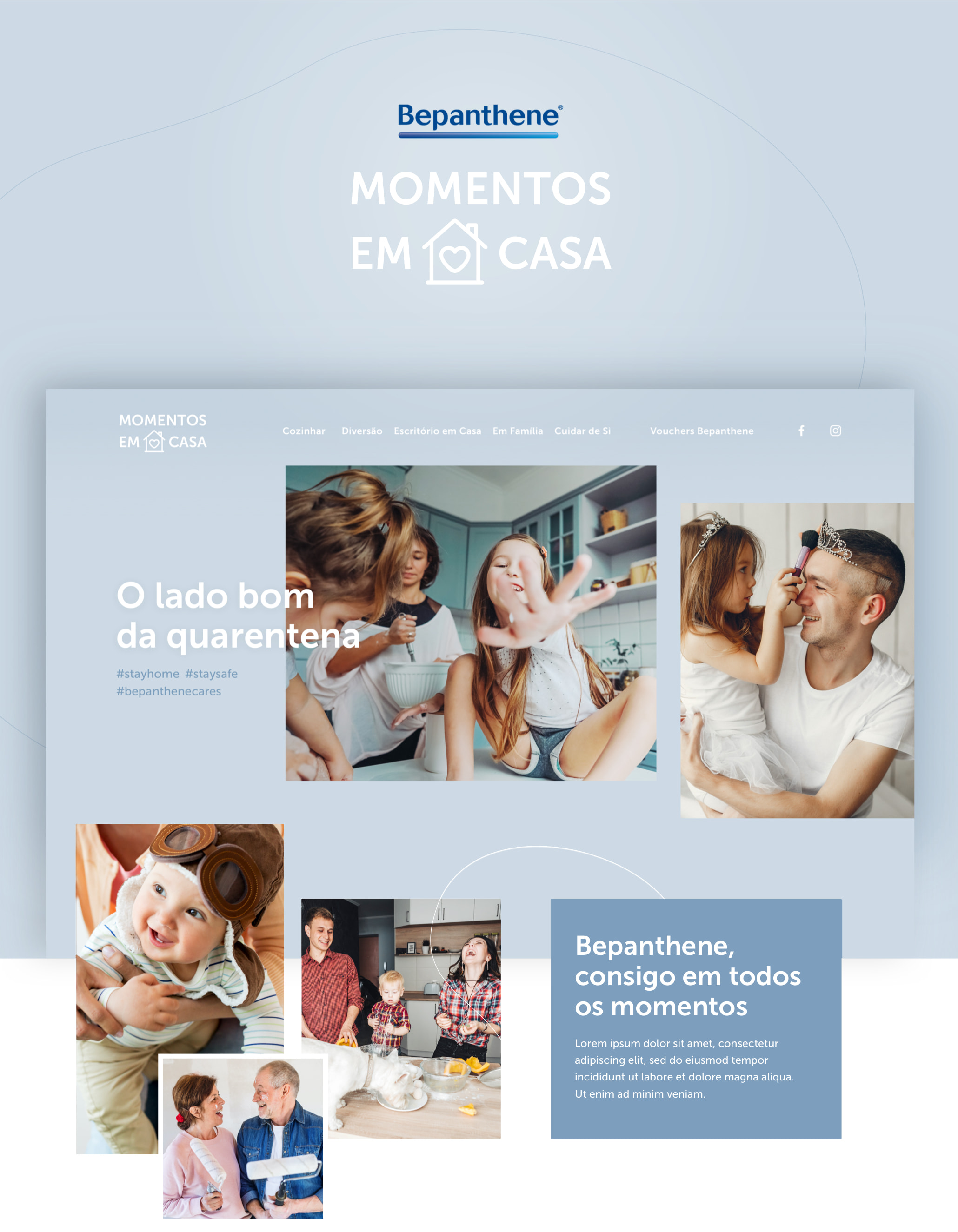 O projeto Momentos em Casa da conhecida marca Bepanthene, surgiu numa altura desafiante: a pandemia da Covid-19. O principal desafio, foi o de comunicar a marca Bepanthene neste contexto, adaptando a marca e a sua comunicação. Arregaçamos as mangas e o projeto acabou por ser um dos mais entusiasmantes para nós! Desenvolvemos um microsite, vários artigos para o blog Momentos em Casa, Campanhas de Facebook Ads, Google Ads e Email marketing.