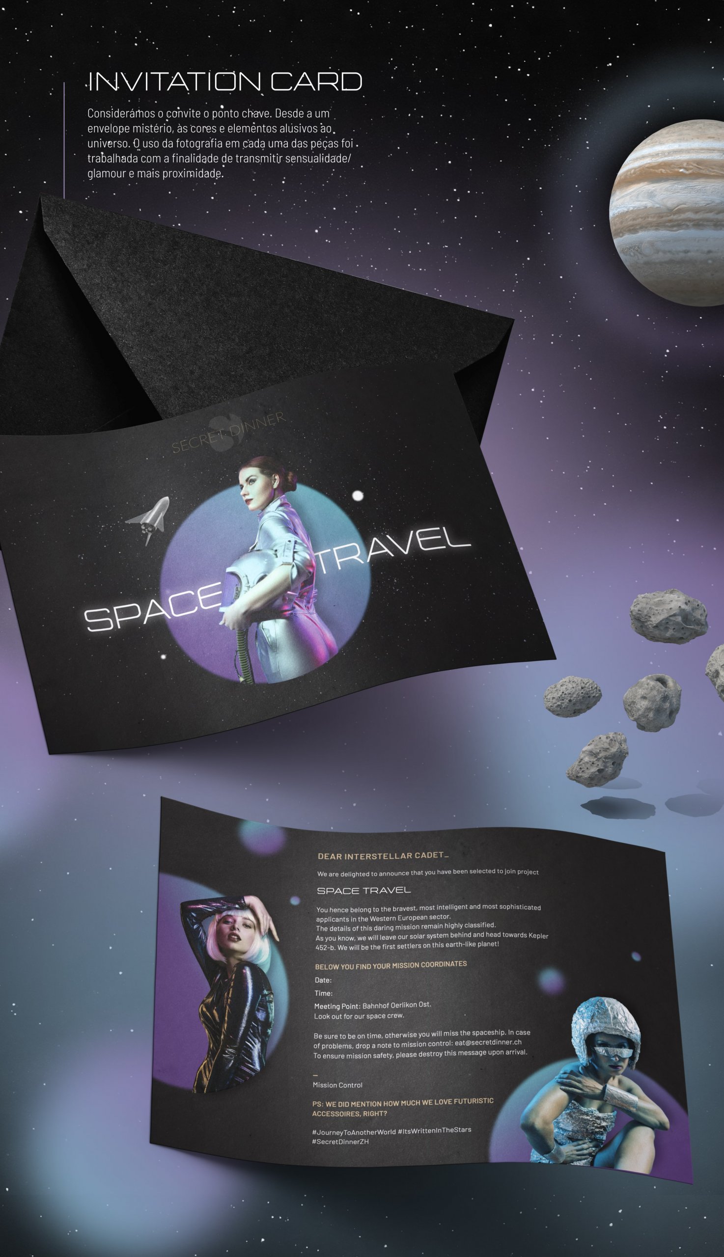 A Secret Dinner realiza eventos privados onde o glamour e o luxo são os primeiros convidados. Cada evento é uma experiência única e desta vez a temática foi uma Viagem ao Espaço!