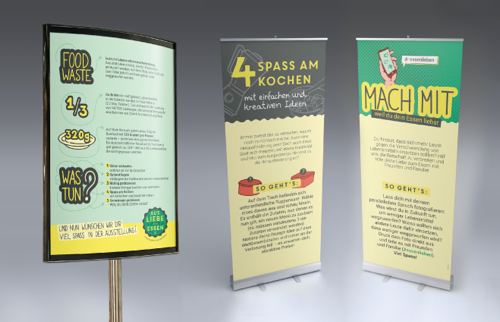 A Aus Liebe zum Essen (Por Amor à Comida) é uma exposição da Foodwaste.ch, uma organização suíça que defende a redução de desperdício no sector alimentar, desde a quinta até à mesa. Para esta exposição, criámos o design de todos os materiais, desde os cenários aos jogos, brindes e vestuário da equipa. A exposição teve lugar em várias cidades na Suíça e em Itália.