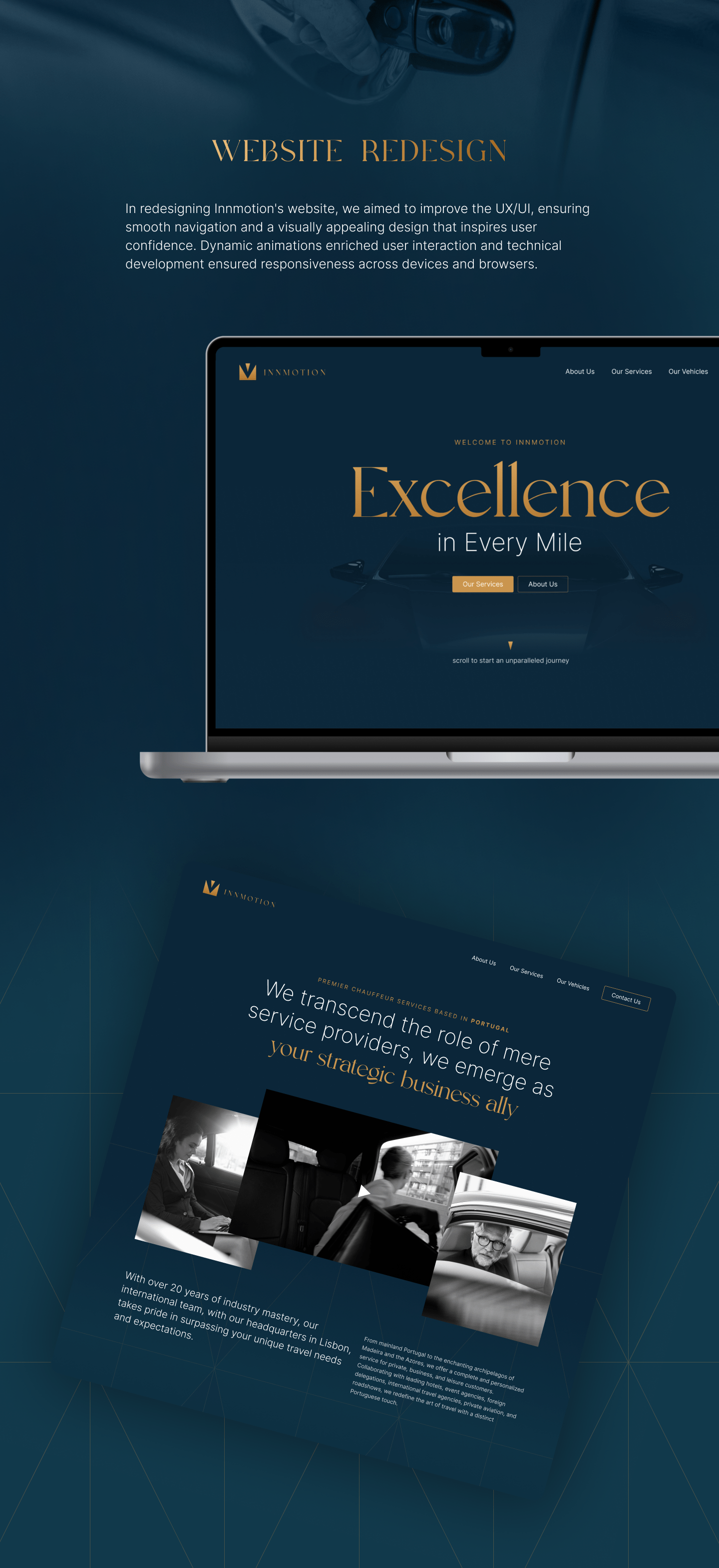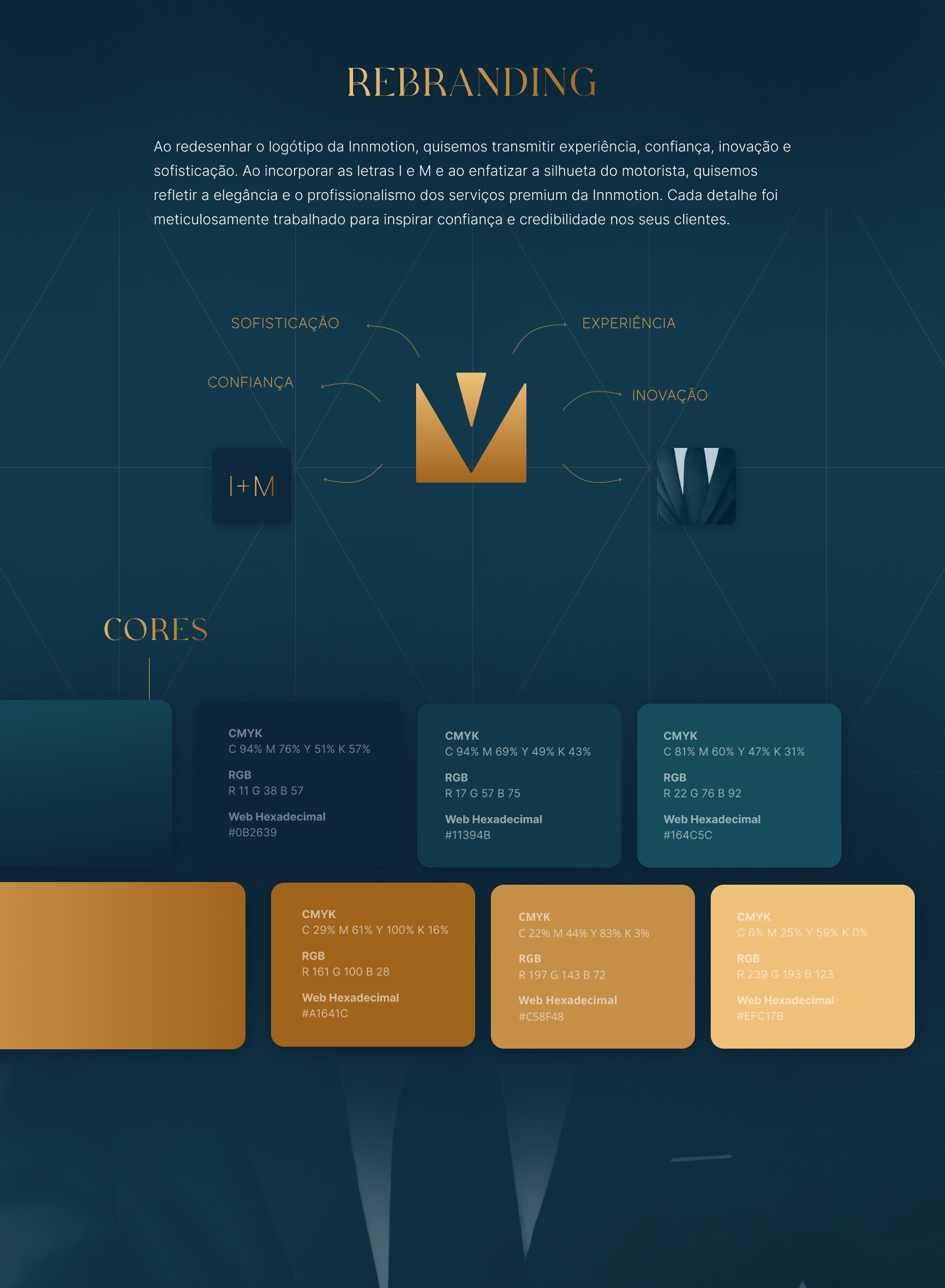 Entra num universo de luxo e sofisticação com a Innmotion, onde cada quilómetro é uma experiência de excelência. Em colaboração com a Brief, transformámos a identidade da marca e a sua presença online para exalar elegância e confiança em cada detalhe. Pronto para uma viagem de elegância? Deixa a Brief conduzir a tua marca a novos patamares!