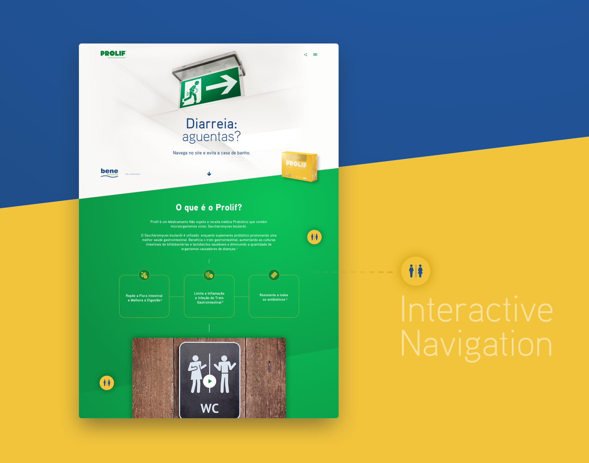 O Prolif é um novo medicamento, da Bene Farmacêutica, para o tratamento dos sintomas da diarreia. Fomos responsáveis por traduzir o conceito criativo e desenvolver um site onde o utilizador é conduzido numa viagem à descoberta das informações e benefícios deste medicamento.