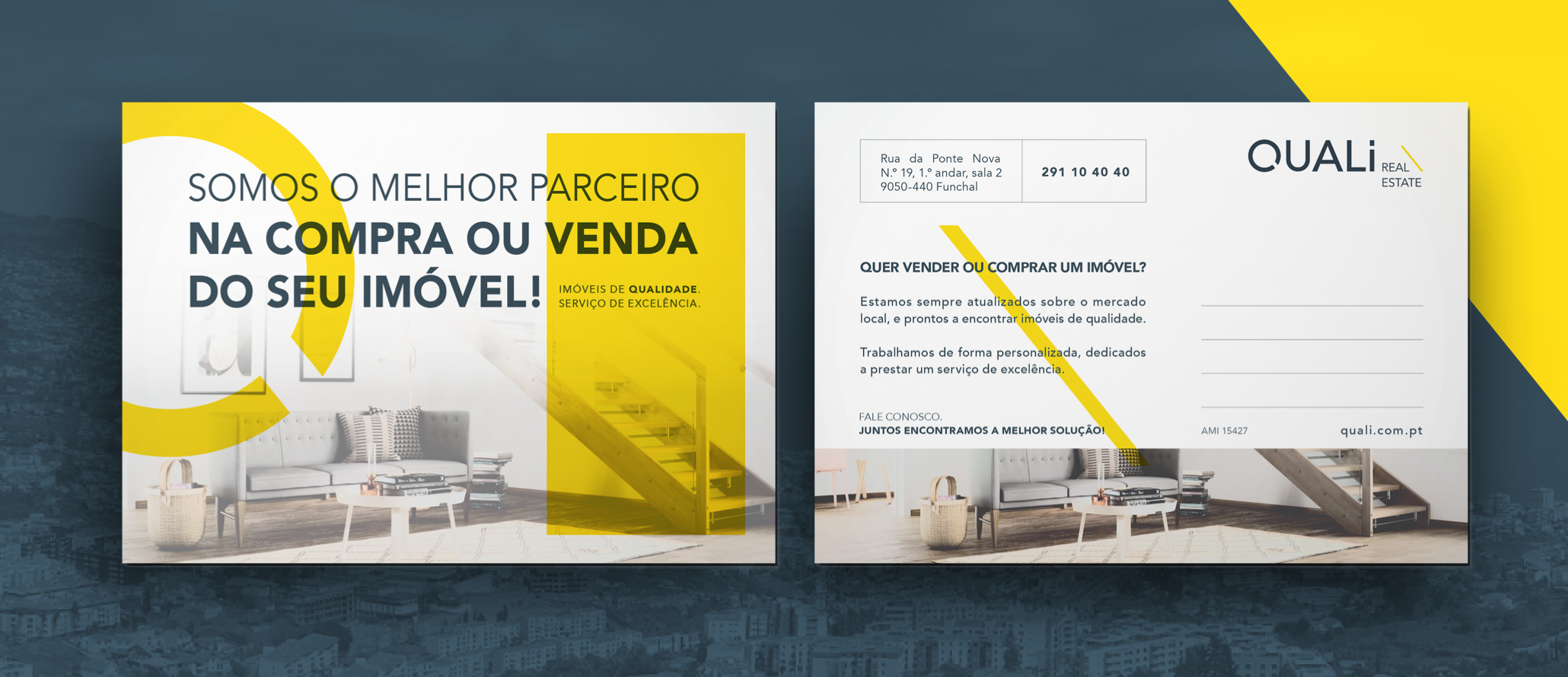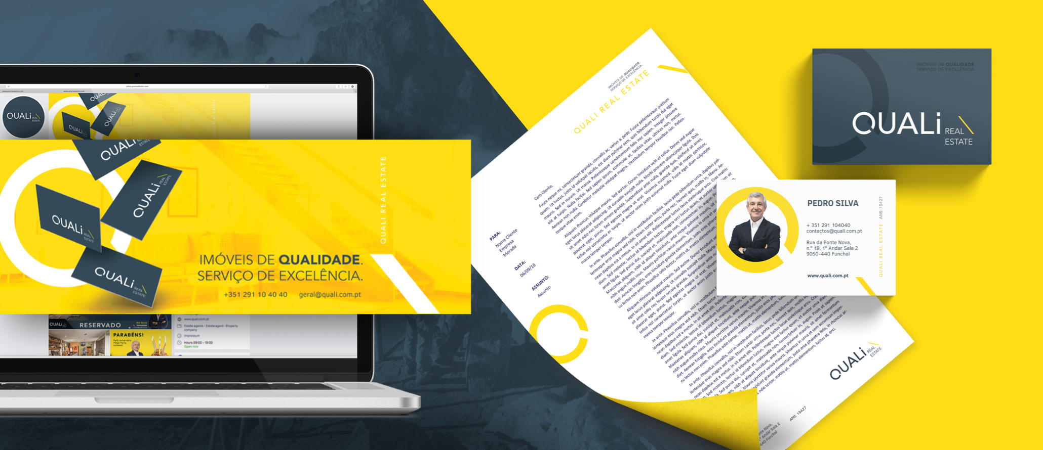A Quali Real Estate é uma agência imobiliária sediada na Ilha da Madeira, que se foca num serviço de elevada qualidade e centrado no cliente. Com vista a melhor representar a visão da Quali Real Estate, fomos responsáveis pela construção de toda a identidade visual, estacionário e website, trabalhando na uniformização de materiais com vista a transmitir o seu carácter profissional, especializado e inovador.