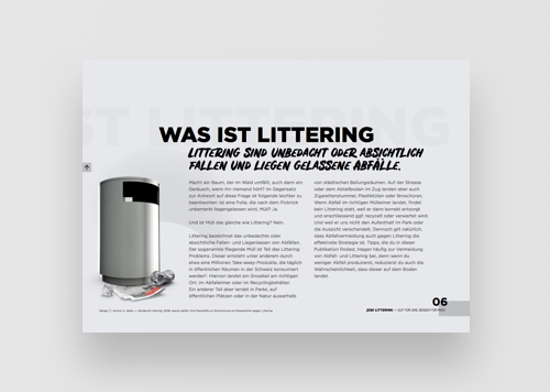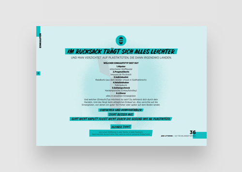 Branding is all about conveying the right message to the right target. For BAFU - Swiss Federal Office for the Environment, our challenge was to create an eye-catching, intuitive report about littering in order to raise awareness for this topic, as well as give out tips on how to achieve a zero waste lifestyle.