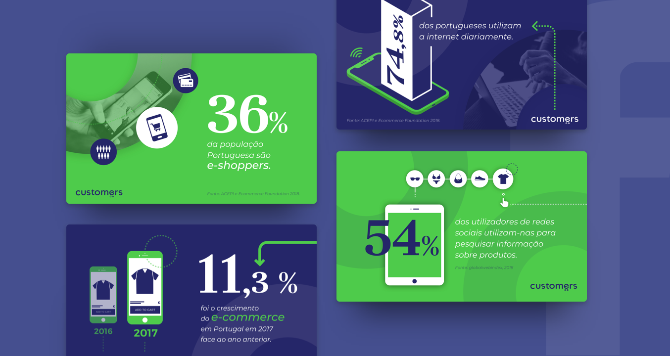 Customers is an e-commerce agency born from a partnership between Brief and log, with the purpose to develop relevant solutions by optimising audiences, conversion and engagement throughout the online shopping universe. For this specific project we developed the branding and designed the website, as well as other communication materials.