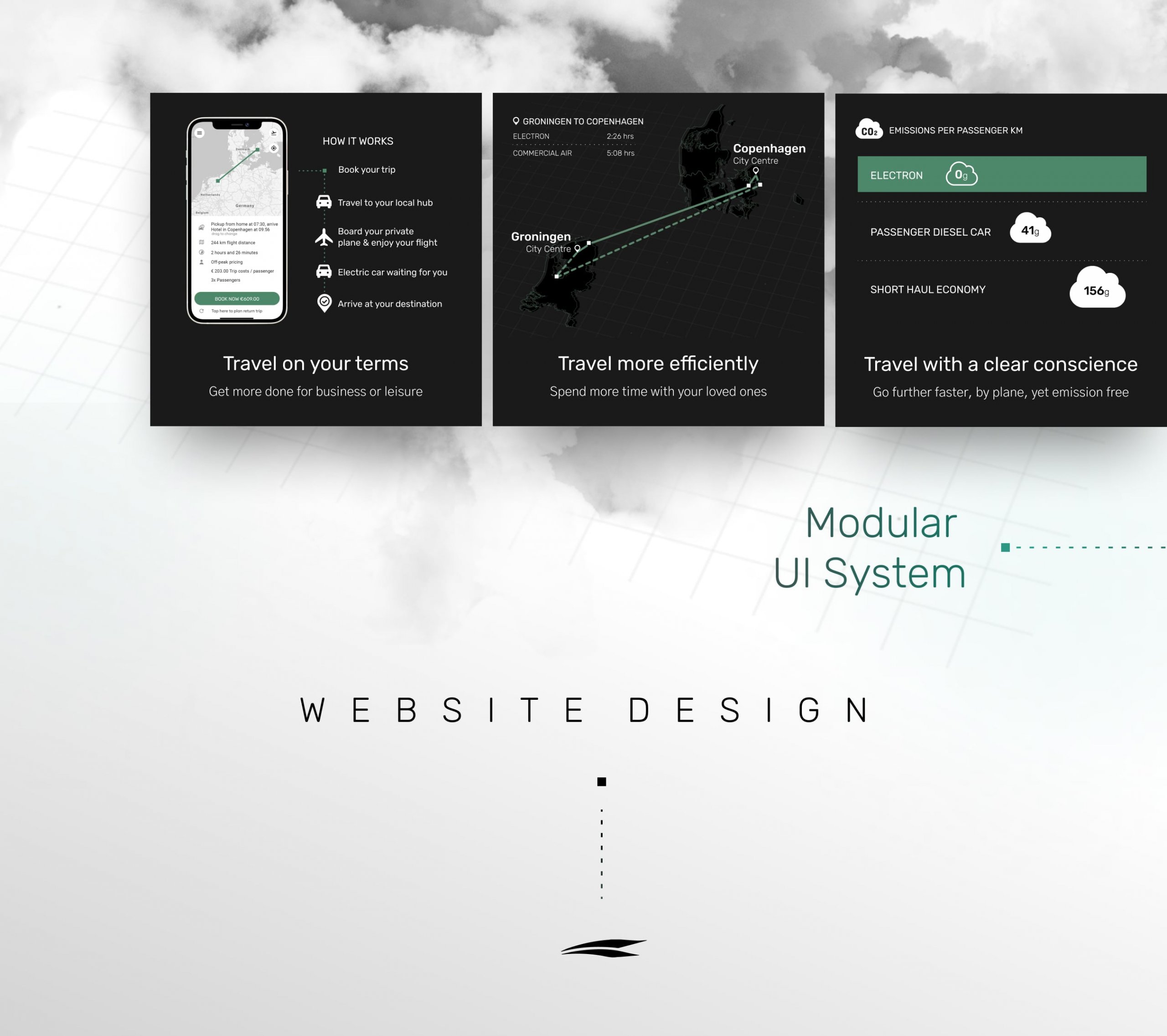 What if, to get faster, we could fly? Daily, without complications, without queues and zero-emissions, ELECTRON AVIATION provides an air transport service that will leave many taxis on the ground. For their website, we were responsible for creating a modular landing page built through a design system, in which the graphics and the use of 3D images provide a user experience on par with the high quality service provided by this pioneering electric aircraft company.
