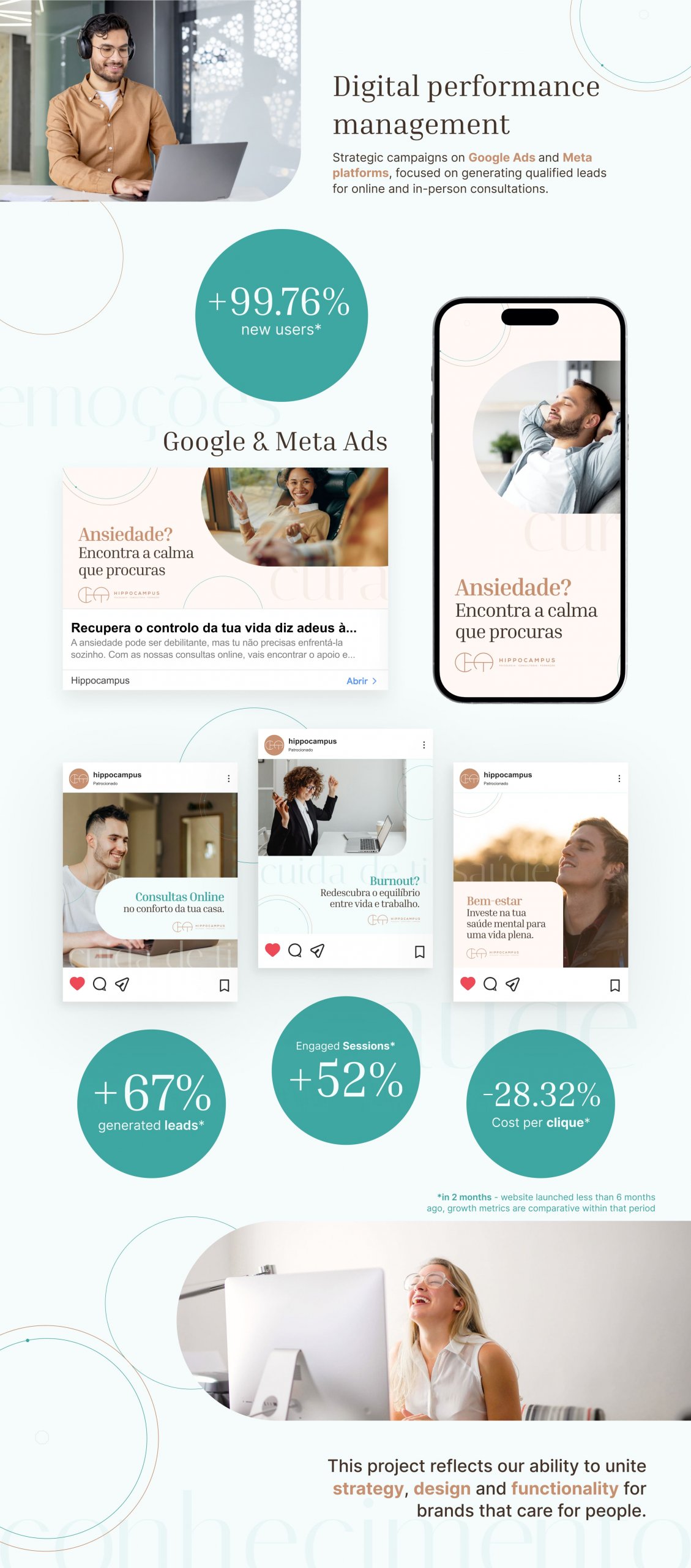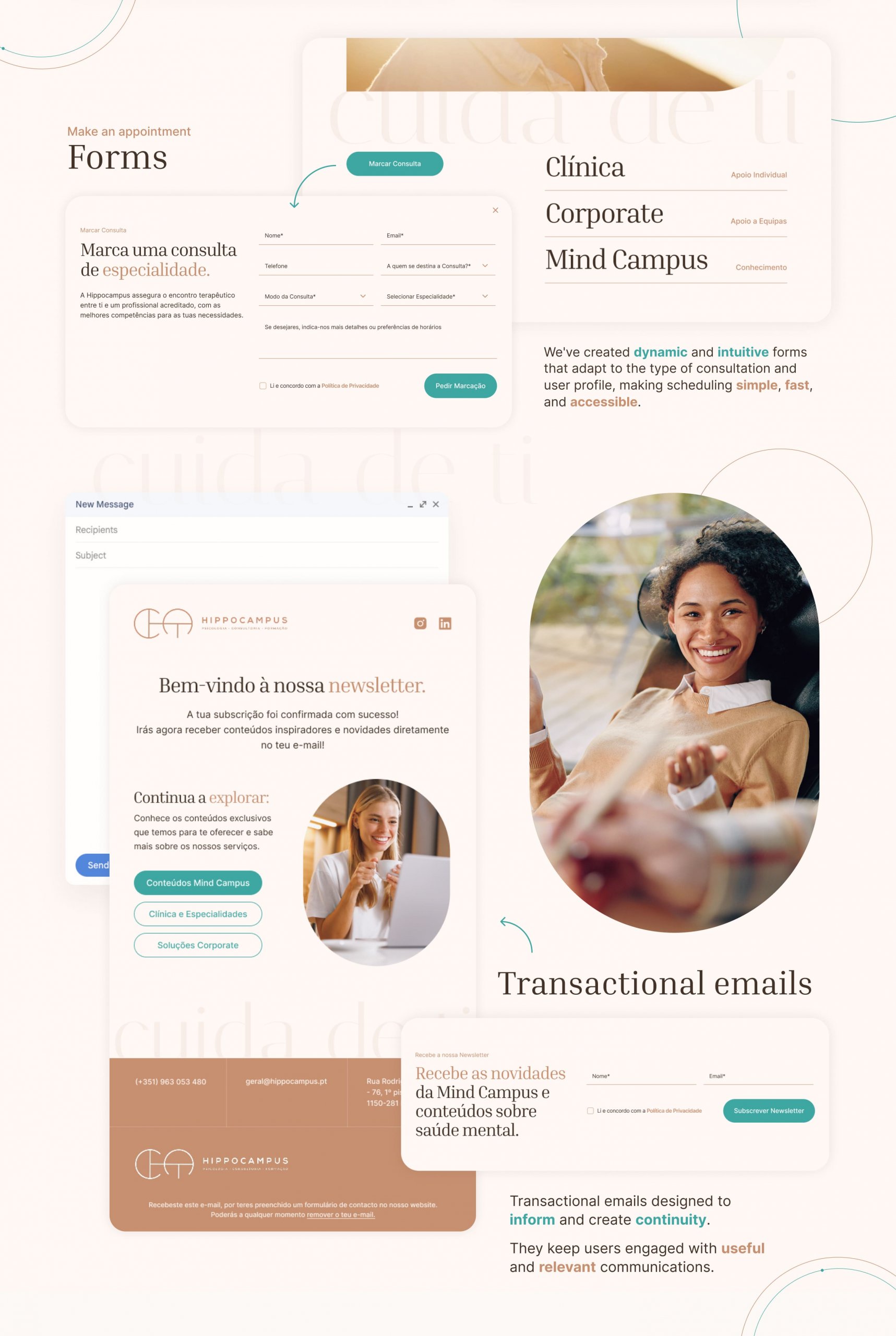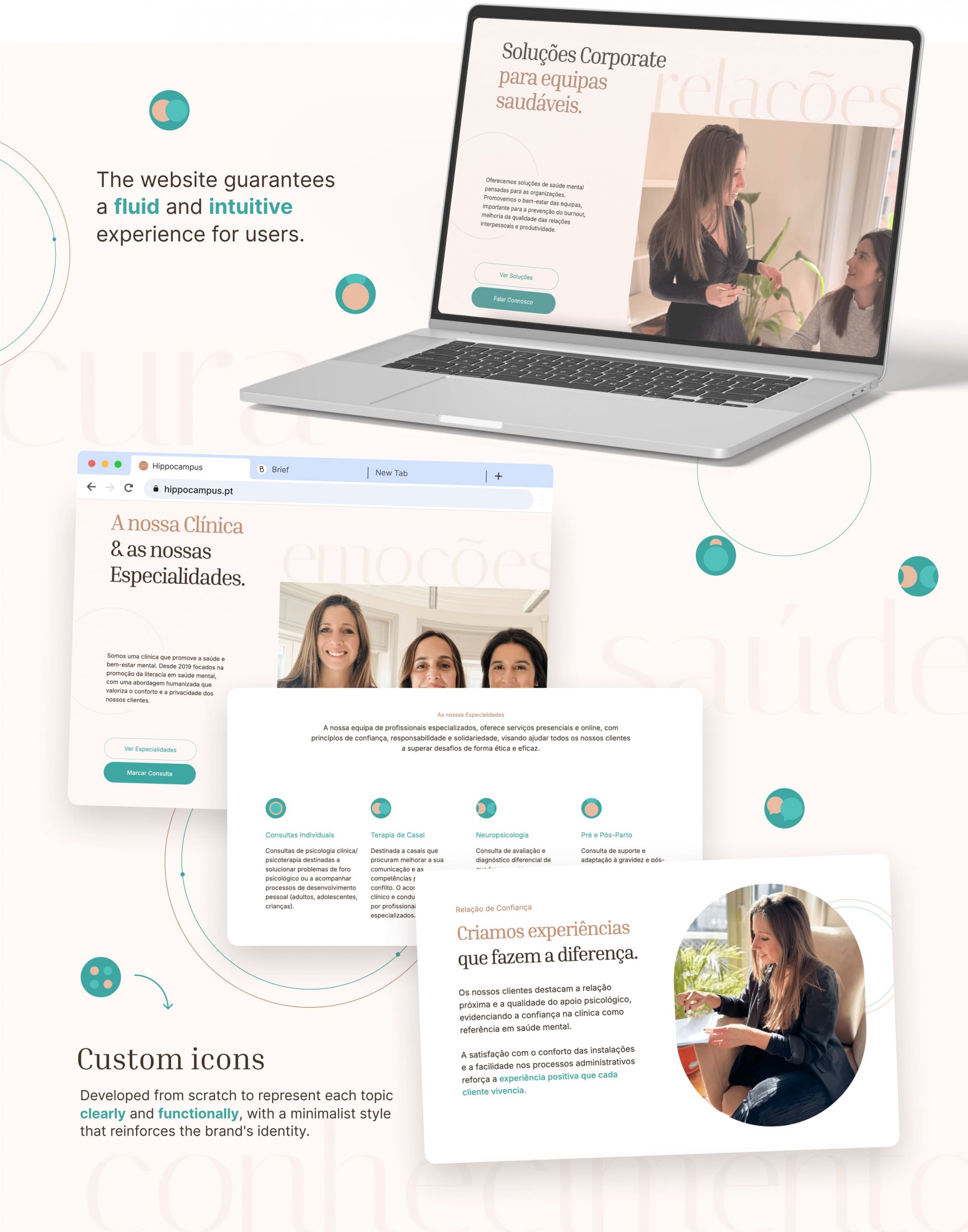 Clínica Hippocampus entrusted us with the challenge of translating its innovative approach to mental health into the digital world. Our goal was to create a coherent, welcoming, and professional visual identity, capable of conveying trust, empathy, and modernity, which are essential pillars of the brand.