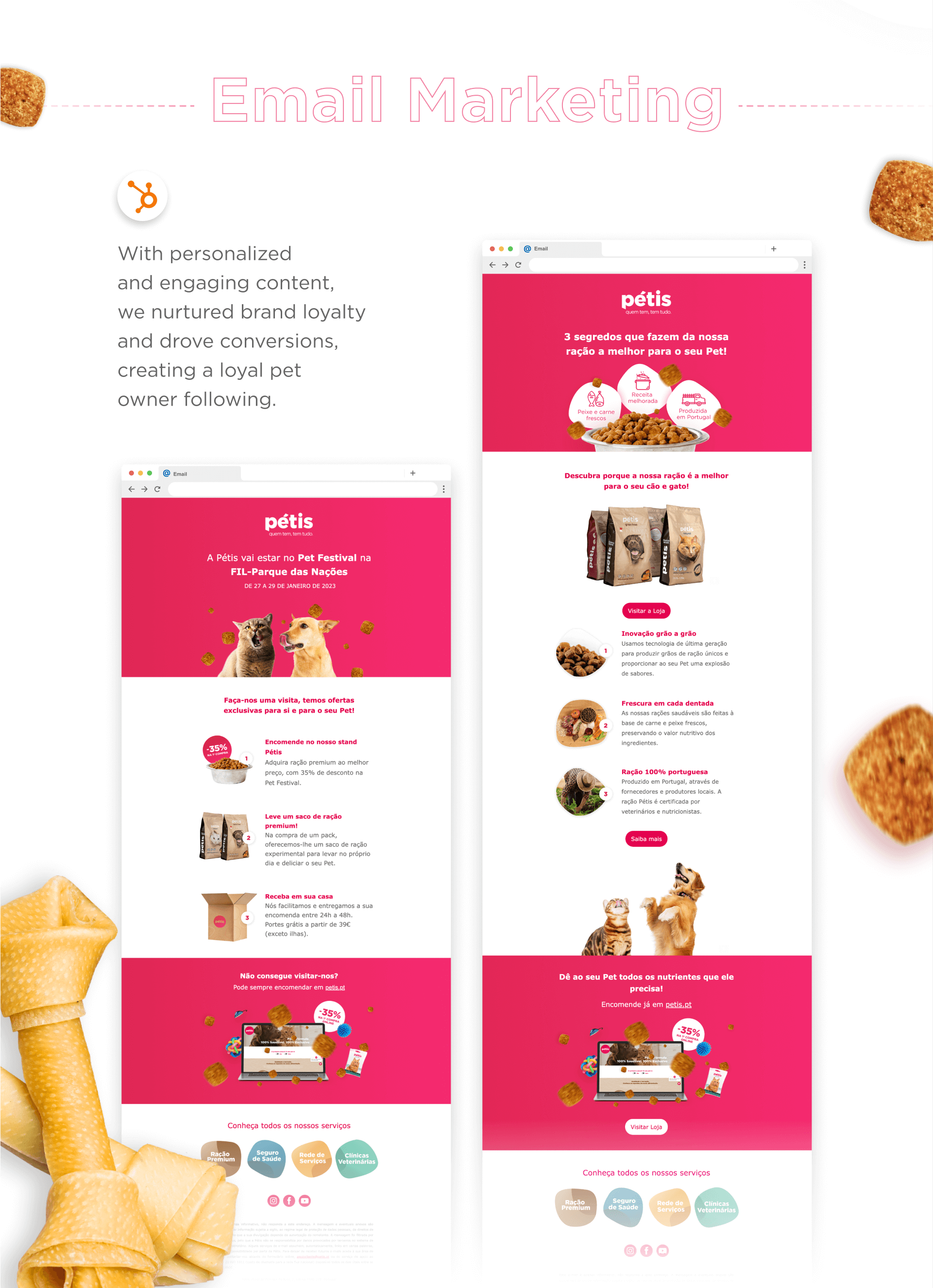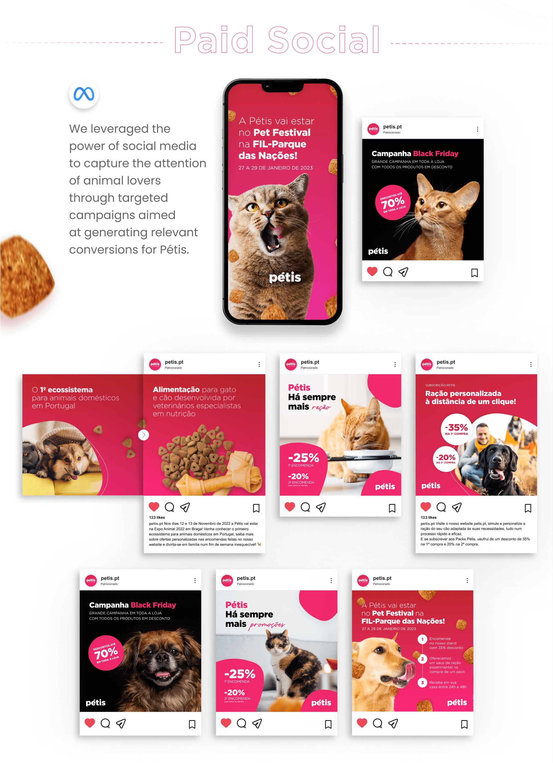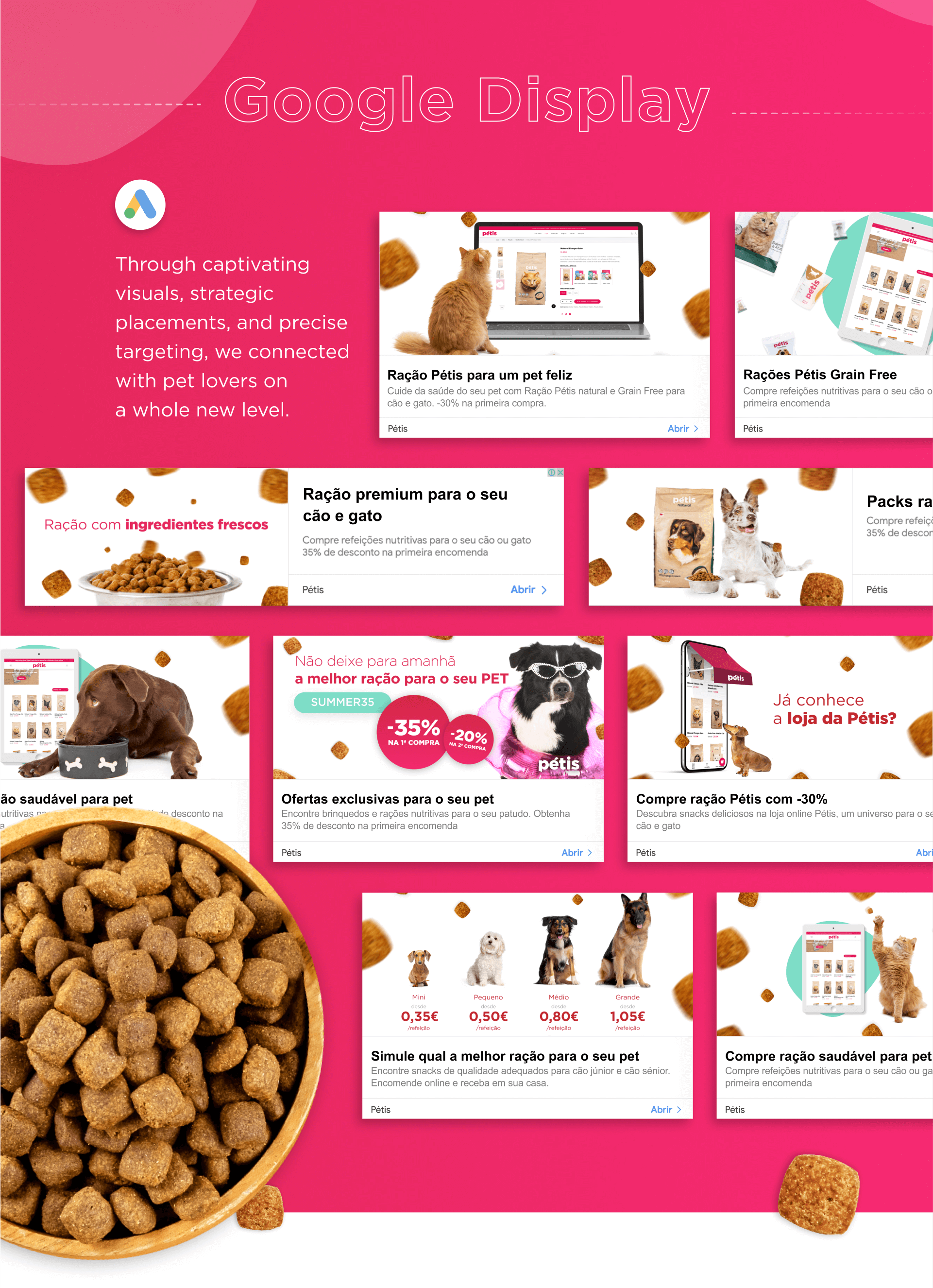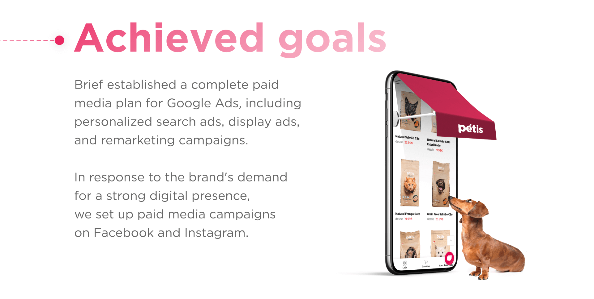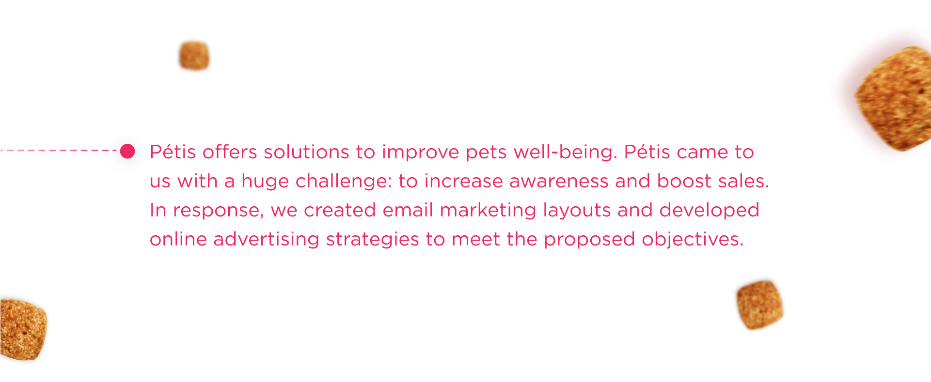 Pétis came to us with a huge challenge: to increase awareness and boost sales. We rolled up our sleeves and faced the project with the mission of helping Pétis succeed in the digital world, as well as providing well-being for pets. We implemented email marketing, Google Ads and social media campaigns.